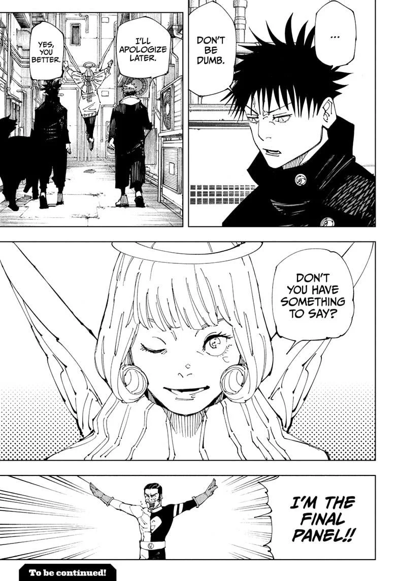 The chapter also explores interactions between Yuji and Hana. Yuji expresses concern about Hana potentially taking the place of his fallen comrade, Nobara Kugisaki. Hana’s empathetic yet humorous response deepens the character relationships and adds emotional nuance to the story, a hallmark of the JJK manga.